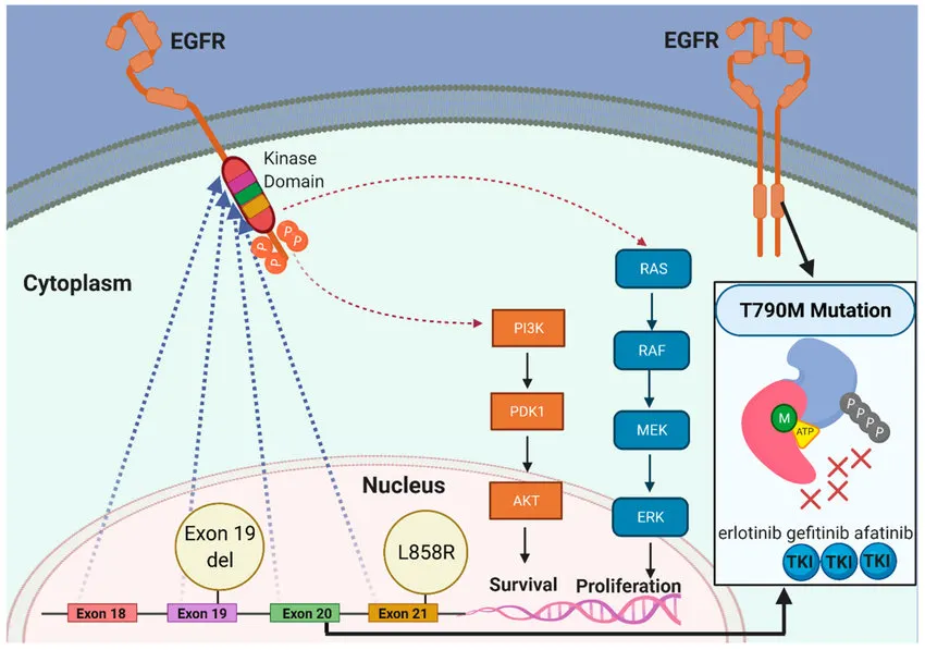 T790M “gatekeeper” mutation in EGFR, which reportedly pre-exists or develops after several months of continuous treatment
