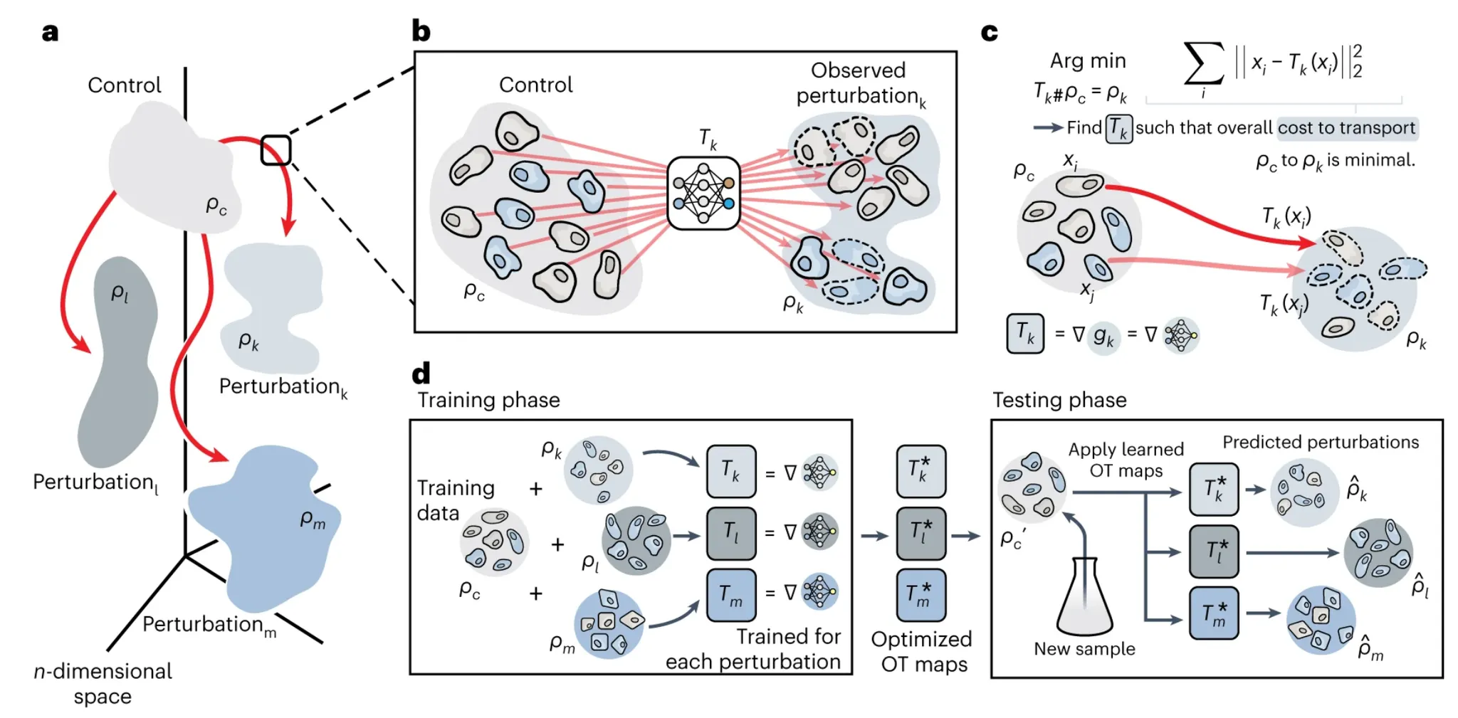 Traditional OT methods do not enable out-of-sample predictions on unseen cells and forecasting of cellular dynamics
