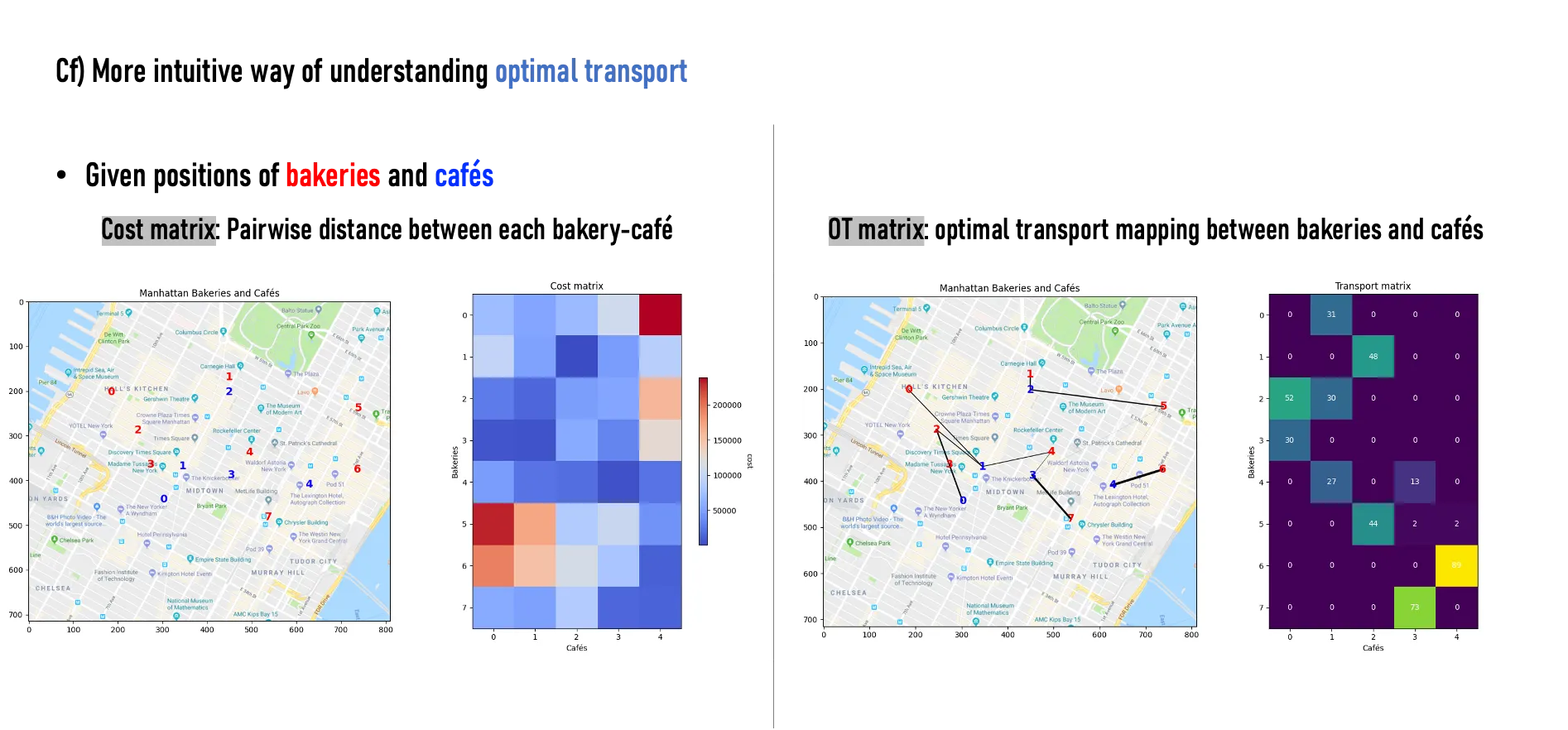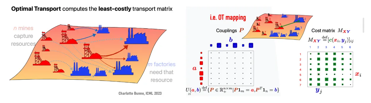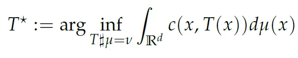 , find a map that pushes one mass onto the other in a way that minimizes the total cost of transport